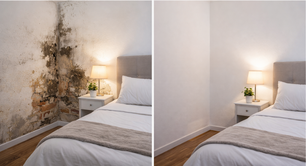 Las paredes dejaron de absorber humedad progresivamente y se eliminó el problema desde el origen. Vivienda seca y estable.